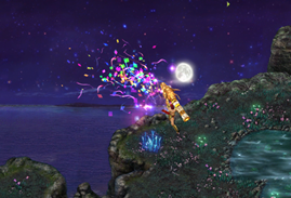 为9周年庆特制的珍藏庆典礼花,能够勾画出蝴蝶一般的绚丽光彩,使用后周围玩家可同步获得蝴蝶环绕效果。