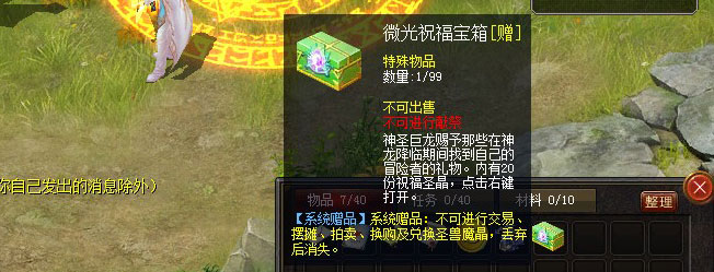 祝福宝箱里放有大量的祝福圣晶,如果在当天神龙降临前,也就是21:00前,全亚特大陆的人们在圣龙祭典上供奉的供品数量达到了10000份,则神龙带来的祝福宝箱将升级为祝福大宝箱——那里面的祝福圣晶数量可是同档次的祝福宝箱内祝福圣晶数量的2倍哦!
