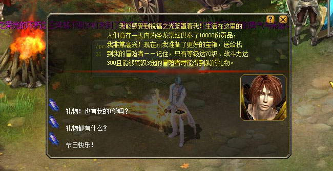 当天21:00前全服玩家供奉的供品达到10000份,则奖励改为大宝箱。