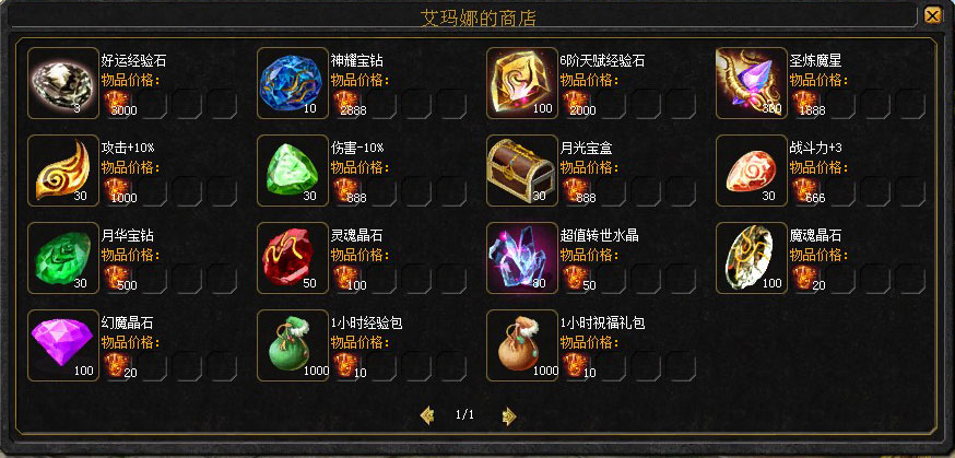 使用祝福圣晶可在卡诺萨城的圣龙祭司艾玛娜(343,399)处兑换到各类中级宝石、月华宝钻、月光宝盒[绑]、灵魂晶石[绑]、神耀宝钻、好运经验石[绑]等好礼。 |