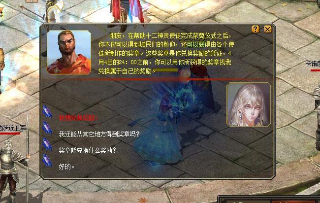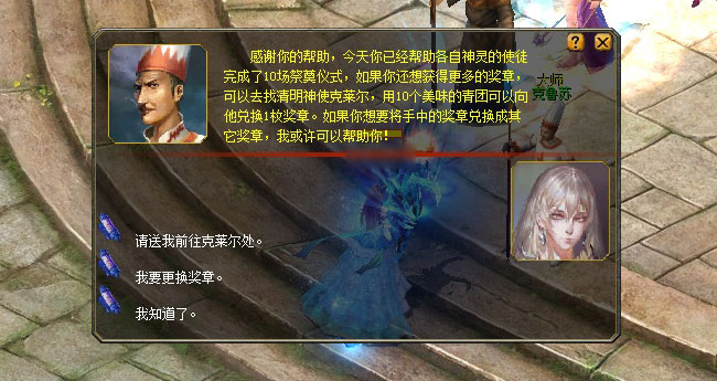别小看这些奖章,它们可是你辛苦劳作的最好证明,也是你兑换奖励的唯一凭证。当你手中拥有足够数量的神灵奖章之后,就可以找奖章兑换大使诺拉德兑换你想要的奖励了。
