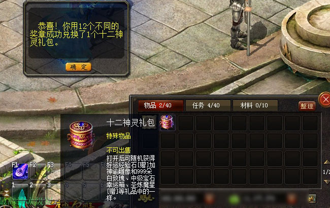 祭奠神灵会获得12枚不同奖章,均可用于在大师克鲁苏处兑换礼包奖励: |