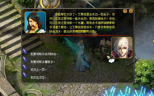 在洛迪克那里,已经忙得焦头烂额的他请求你帮忙照料他的艾草田,以此换取嫩艾草。为了嫩艾草,你愿意帮助他。