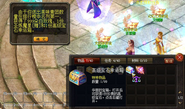 美味的青团出锅后,就可以拿去送给卡诺萨的琪斯兰、传送师米兰达、传送师帕娜尔和药剂师阿德兰修这几位在清明节里忙碌的人。你每送她们一个美味的青团,都能获得她们回馈的清明感恩礼包和大量的升级经验。 当然,她们吃完东西后也要消化一下才行,在每吃完一个美味青团后,她们需要休息2分钟才能继续享用美味的青团。