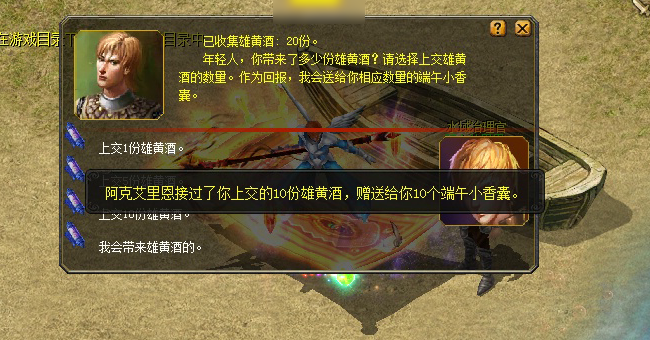 除此之外,上交雄黄酒还可获得端午小香囊哦。 |