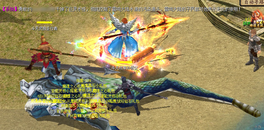 干得漂亮!在勇士们的打击下,巨灵水怪终于倒下。随着一声声脆响,一堆珍宝落在了地面上。 勇敢的冒险者们!在端午盛典期间击杀巨灵水怪,不仅能为卡诺萨城尽一份心力,还能得到各种宝物,你还在等些什么呢?快来加入击杀巨灵水怪的队伍吧! |