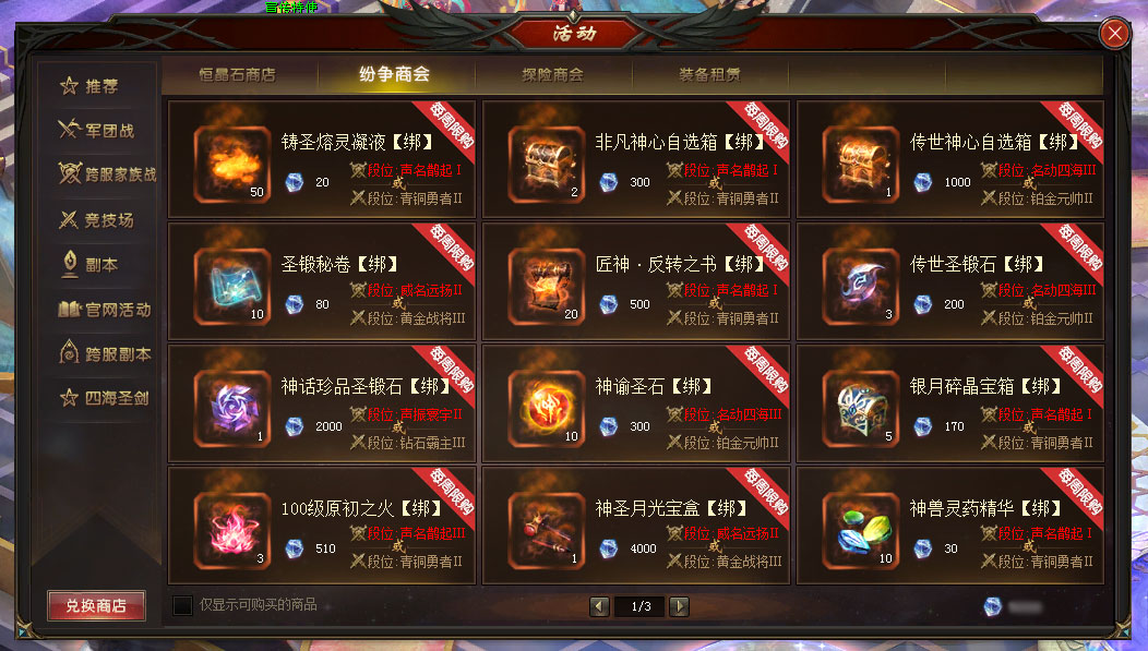 注:纷争商会中换取的物品均为【绑】属性,不可交易。