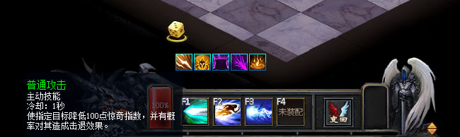 点击F1-F4可进行对应类别的技能施放——F1为普通攻击,F2为加速,F3为对战技能,F4为道具技能。