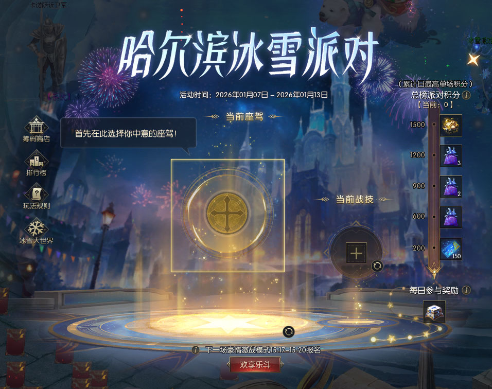 各位勇士可以自由选择参与冰雪派对时,所使用的派对座驾以及对战技能。
