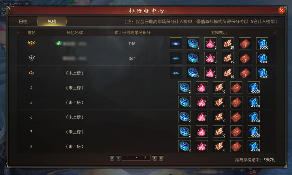 特别提醒:豪情激战模式下,单场所得积分将在本场结算后以1.5倍计入榜单。