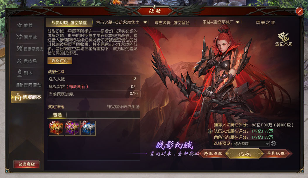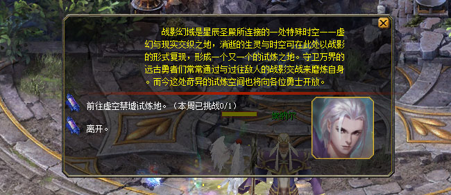 每周最多可成功挑战1次“战影幻域-虚空禁墟试炼地” |