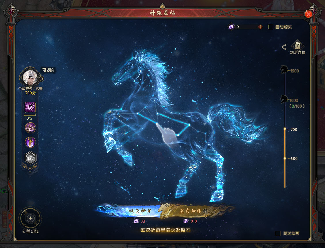 注:进行“幻兽助战”可指定幻兽进行助战,直接提升神骏评分并获免费祈愿次数。