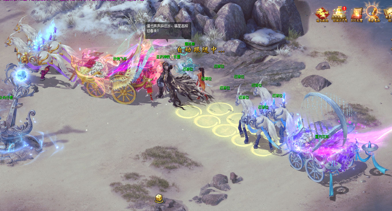 2026年1月23日至2026年2月24日期间,人物等级达到90级、成神且可驾驭三宠的勇士,可以前往云澜花洲,感受“祈年节”的新年氛围,并参与各项年俗活动,收获游历经验、花洲贺岁币·午马【绑】奖励。