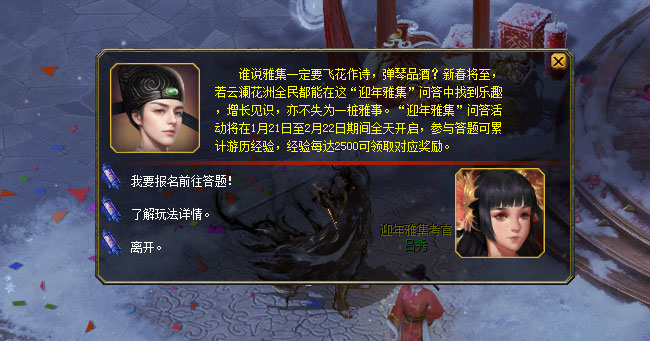 若你对云澜花洲和年兽们已经有了一定了解,可别错过了这场问答活动,快前往岁安坪,找到这位吕秀考官进行报名吧。