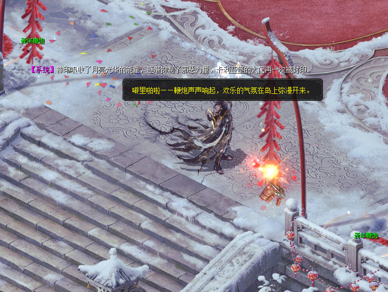 只需将手中的瑞焰爆竹丢向鞭炮,就可以将它们点燃。噼里啪啦的爆竹声中不仅有着对新年的祈愿,瑞焰祥光更是能让你的脚步如爆竹般连绵迅捷,提升你在云澜花洲上的移动速度!