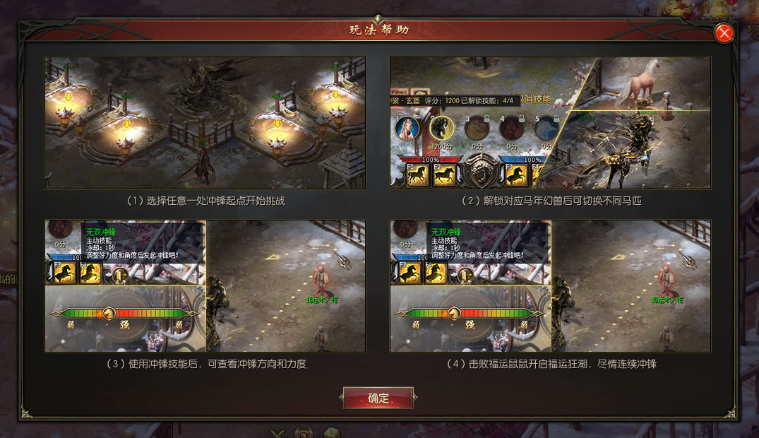 山丹良马与幻兽评分500分以下的马年幻兽拥有相同的基础冲锋技能,马年幻兽评分达500、1000、1200时则可分别解锁更为强大的冲锋技能。