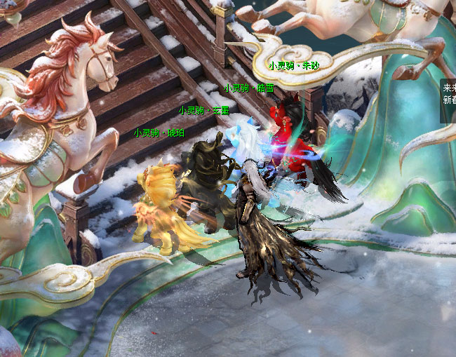 观赛过程中,勇士可不仅仅只能看着,还可以用一些小花招助力自己支持的小灵驹——使用“元宝福饺”与“缓速巴豆”技能投喂食物可使小灵驹的速度提升或降低,投掷“瑞焰爆竹”还可驱散暗渊之雾,令小灵驹的速度恢复如常喔。