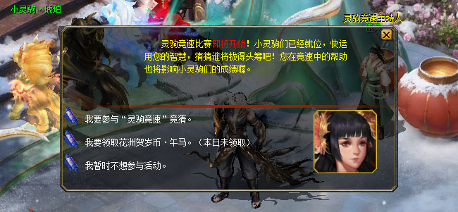每位勇士每日可在灵驹竞速主持人处领取100枚花洲贺岁币·午马。如果你想要获得更多的花洲贺岁币·午马,不妨参加灵驹竞速活动吧。