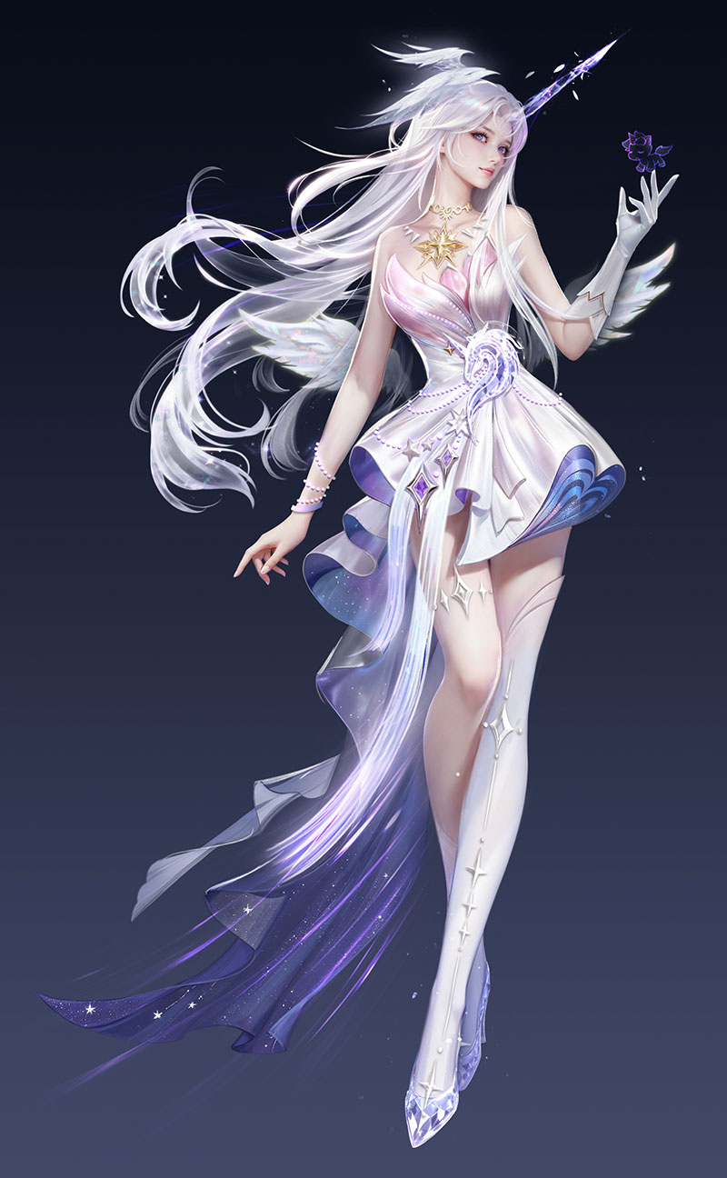 技能说明:在独角兽的祝福与庇佑下,两颗只为彼此悸动的心,此刻再无隔阂。星光垂落,恋曲奏响,真爱携手,奔赴一场永世相守的梦舞。
