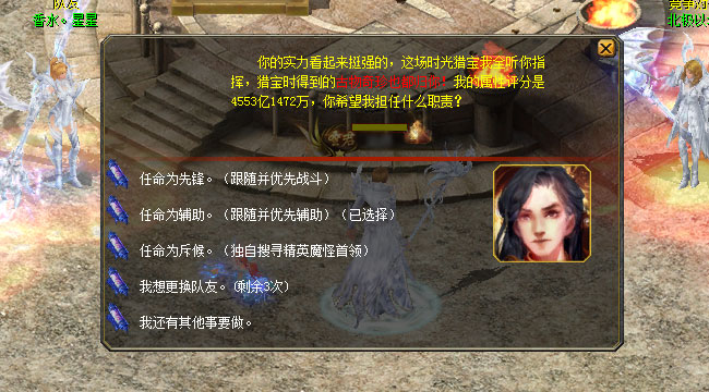2006年雷鸣交易行内人声鼎沸,许多参与时光猎宝的勇士都在此备战,你的队友与对手也在其中。在正式出战前,你可观察对手的实力,评估队友的各项能力,任命队友在团队中担任的职责。若对当前的队友不满,你还可选择换一批队友。