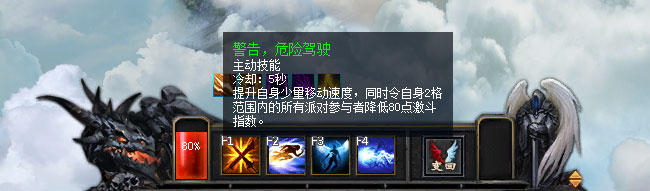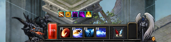 点击F1-F4可进行对应类别的技能施放——F1为普通攻击,F2为加速,F3为对战技能,F4为道具技能。