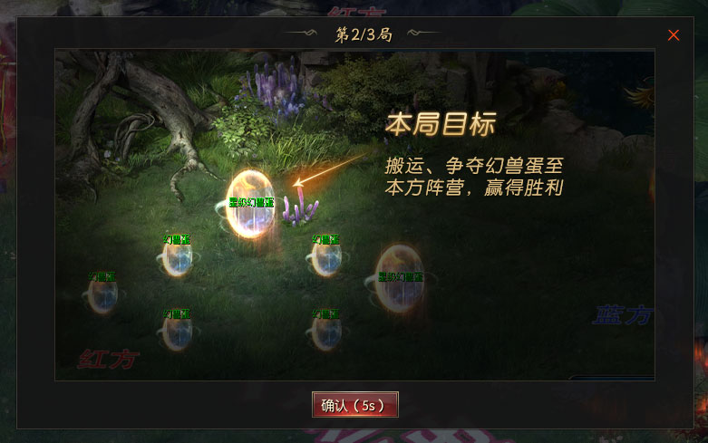 ·第1阶段:参与者快速搬运场内的幻兽蛋至己方基地,来为己方建立基础优势。当场内所有幻兽蛋均被运送至基地或是40秒后,进入第2阶段。