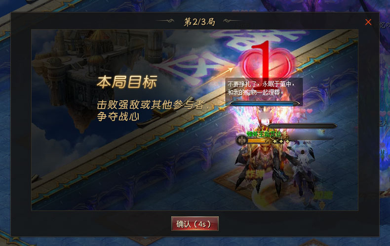 ·本局开始时,每位参与者都会平等地拥有3枚战心。当你的激斗指数归零时,就会失去1枚战心;当你击败他人时,将夺取对方1枚战心。