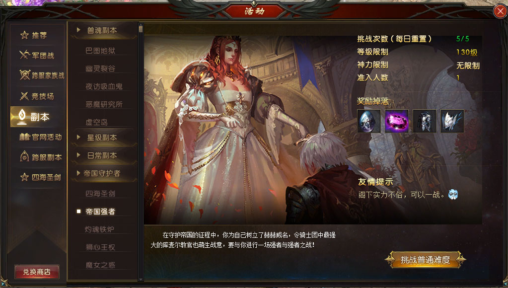 活动:近期热门活动与每日任务展示,玩家完成后可以获得奖励,并可于二级页面进行奖励兑换。