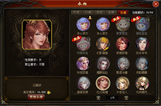 发型头像解锁后永久保存,每次更换只需10000金币的美发费用。