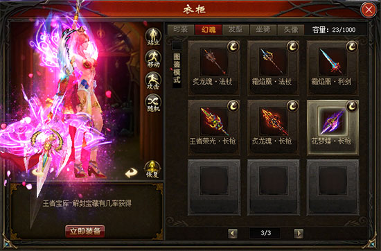 各大职业的武器幻魂也保存在衣柜之中!这类道具可以使得玩家的武器外观变得非常酷炫,是强力玩家的象征!入手方法相对困难,不过肯定符合其价值!