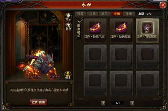 玩家在魔域中获得的所有漂亮时装都会显示在这里哦,玩家可以根据心情随时换装。同时衣柜还提供试穿服务!点开图鉴模式,能看到目前所有时装的列表,玩家可以一件件点击进行试穿!如果您对它十分中意,那么就可以留意下它的获取办法咯!